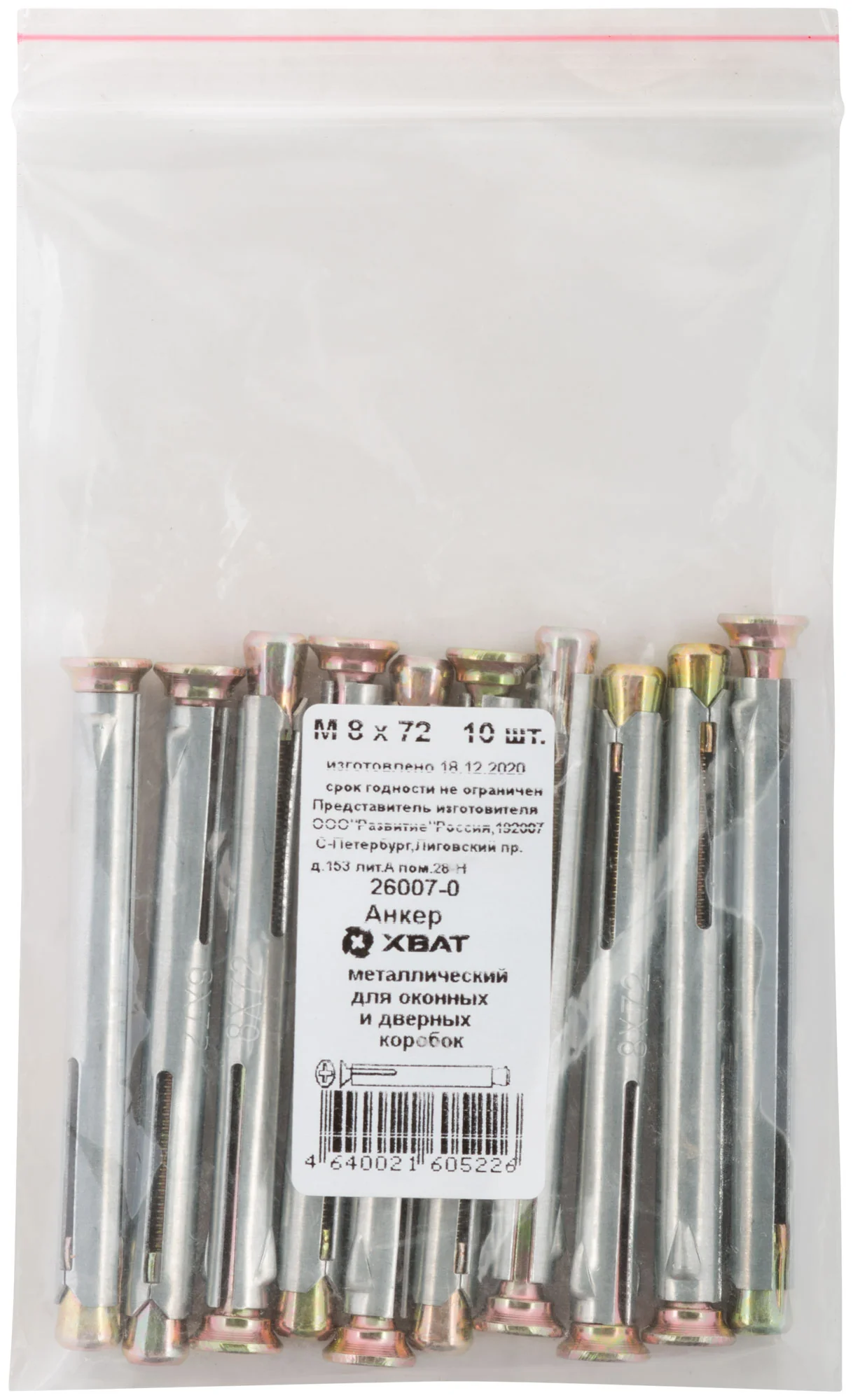 Этот металлический анкер от бренда XВАТ производится в России и отличается высокой прочностью и долговечностью. В упаковке содержится 10 штук, что позволяет удобно планировать закупки для крупных объектов.