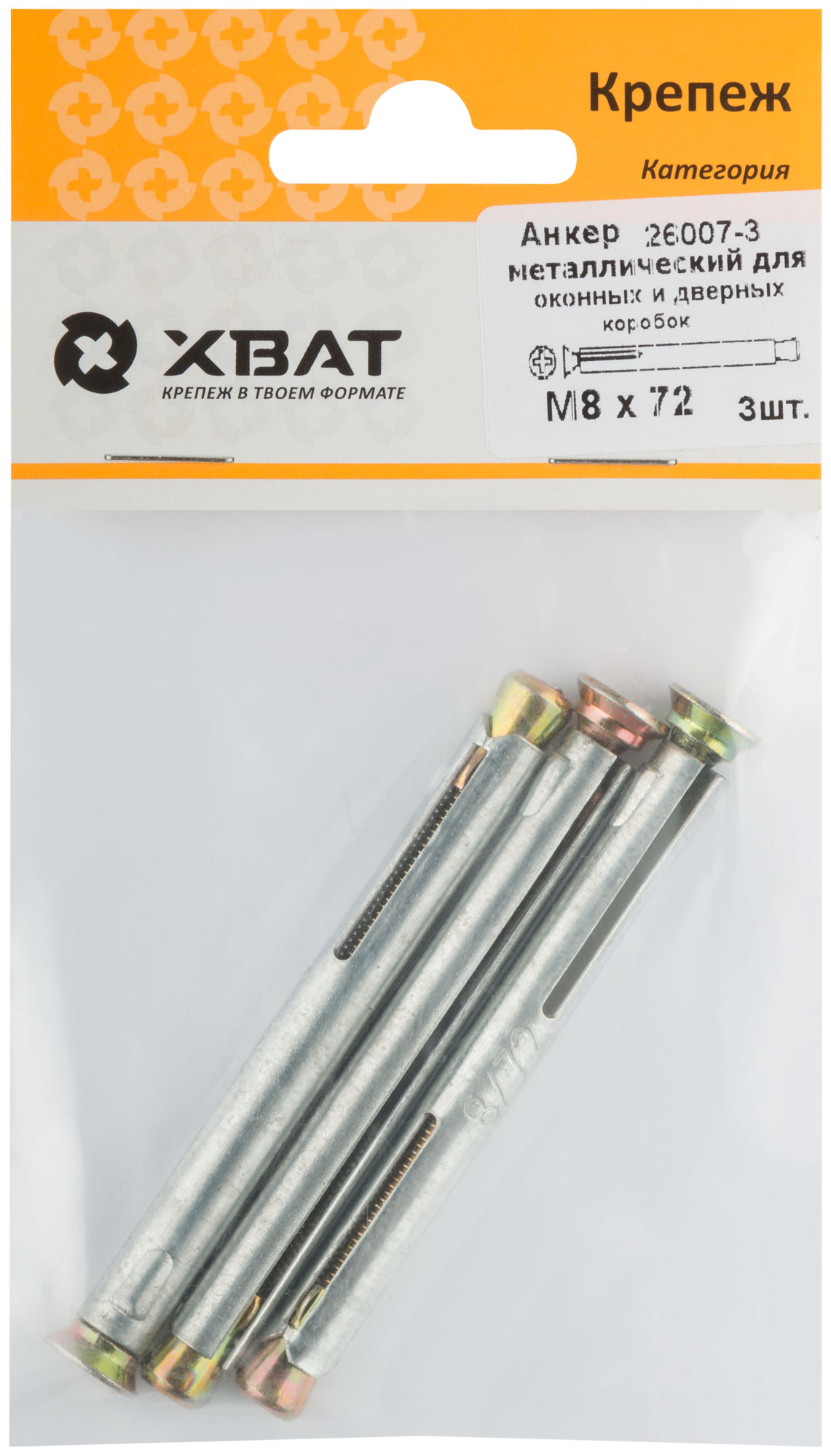Анкер металлический М8х72 для окон и дверей, фасовка 3 шт.