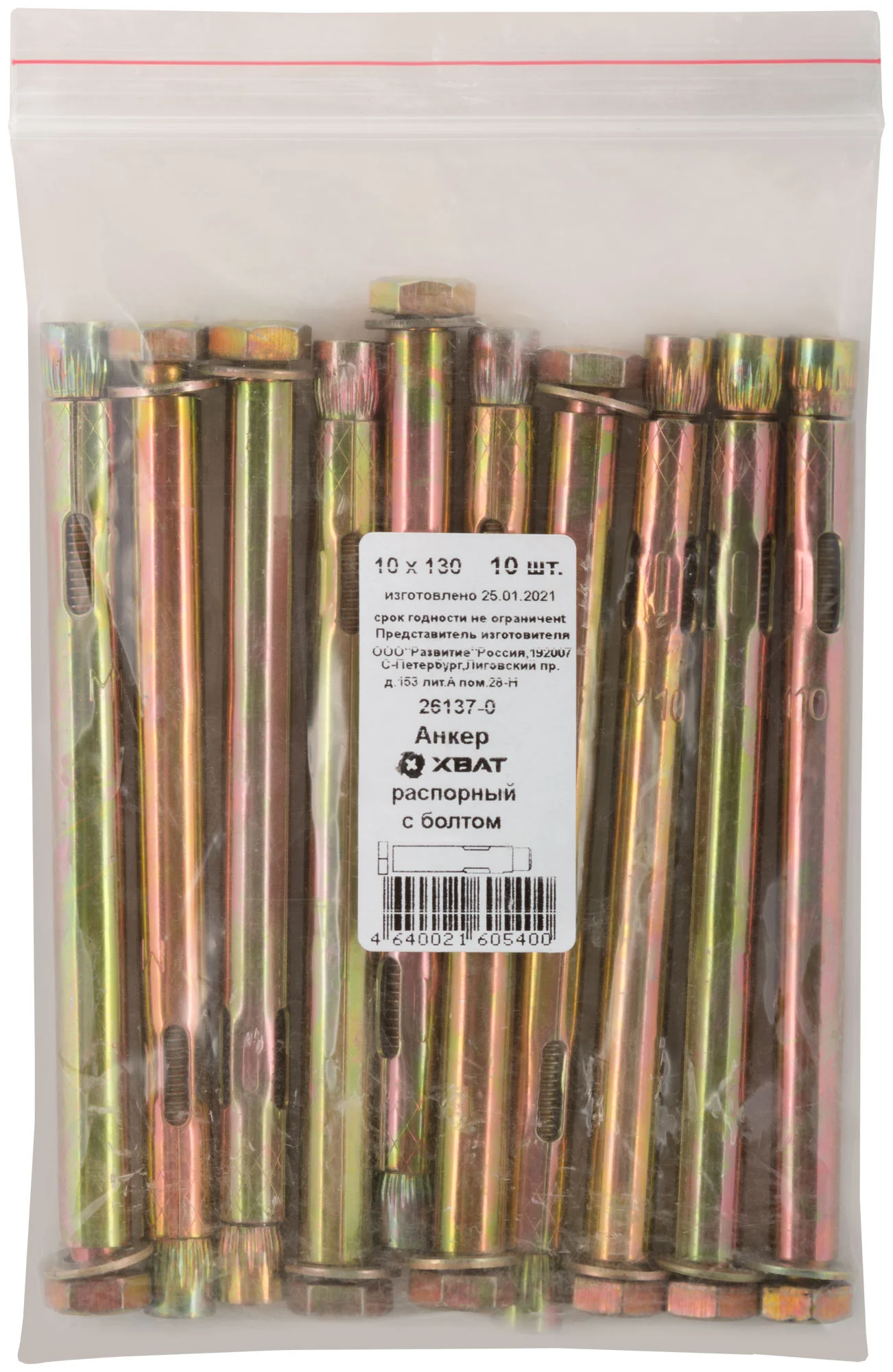 Анкер комплектуется втулкой, болтом и конусом, выполненными из стали с электроцинкованным покрытием желтого цвета, что обеспечивает долговечность и устойчивость к коррозии. Длина анкера составляет 130 мм, что позволяет использовать его в различных строительных проектах.