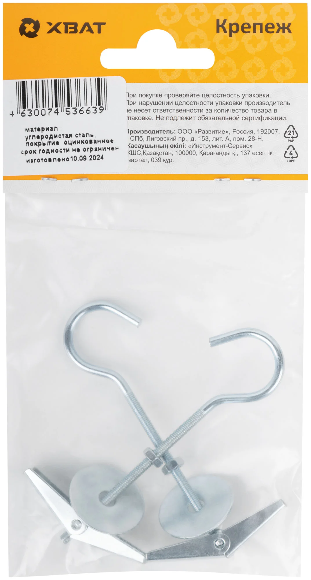 Анкеры изготовлены из стали с гальваническим цинковым покрытием, что обеспечивает долговечность и устойчивость к коррозии. Винты с крюком также имеют метрическую резьбу и цинковое покрытие, что повышает их надежность.
