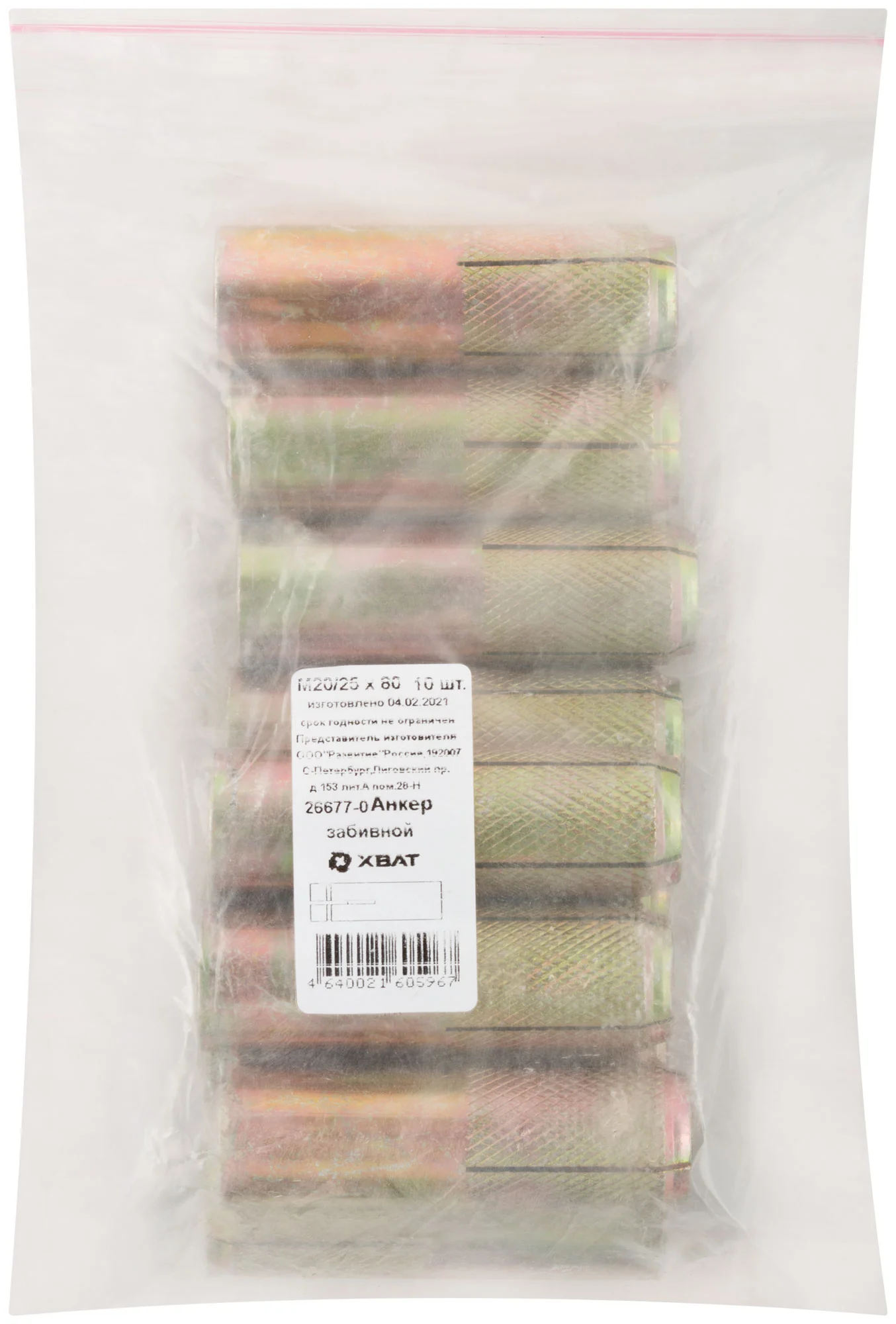 Анкер забивной М20/25х80 от бренда XВАТ — идеальное решение для крепления тяжеловесных конструкций к основаниям из бетона, кирпича или естественного камня. Представьте себе задачу закрепить массивную стеллажную систему в складском помещении — с этим анкером вы справитесь быстро и надежно.