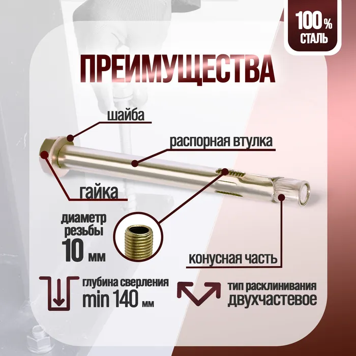Болт широко используется в строительстве, машиностроении, производстве мебели и других отраслях, где необходимо обеспечить надежное крепление элементов конструкции. Он может быть использован для крепления элементов к бетону, кирпичу, дереву и другим материалам.