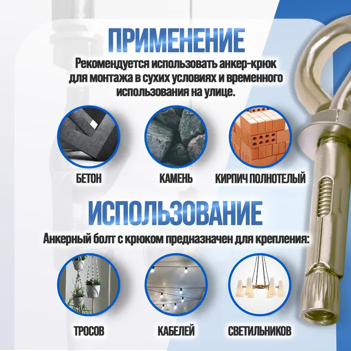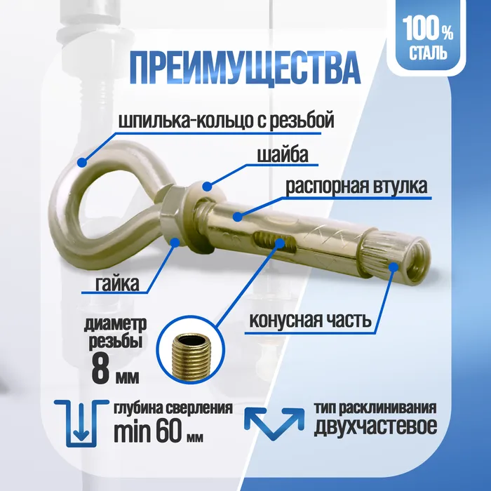 Анкерный болт ЛОМ, с кольцом, оцинкованный, 10х50 мм, 55 шт — Характеристики