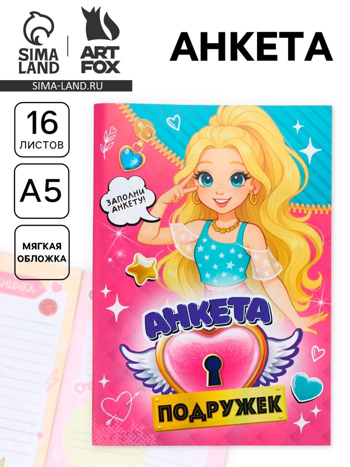Анкета для девочек А5, 16 листов «Анкета классных подружек» — Характеристики