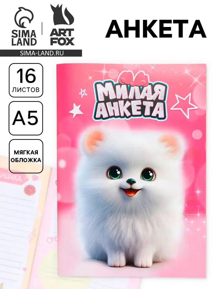 Анкета для девочек А5, 16 листов «Милая анкета» — Характеристики