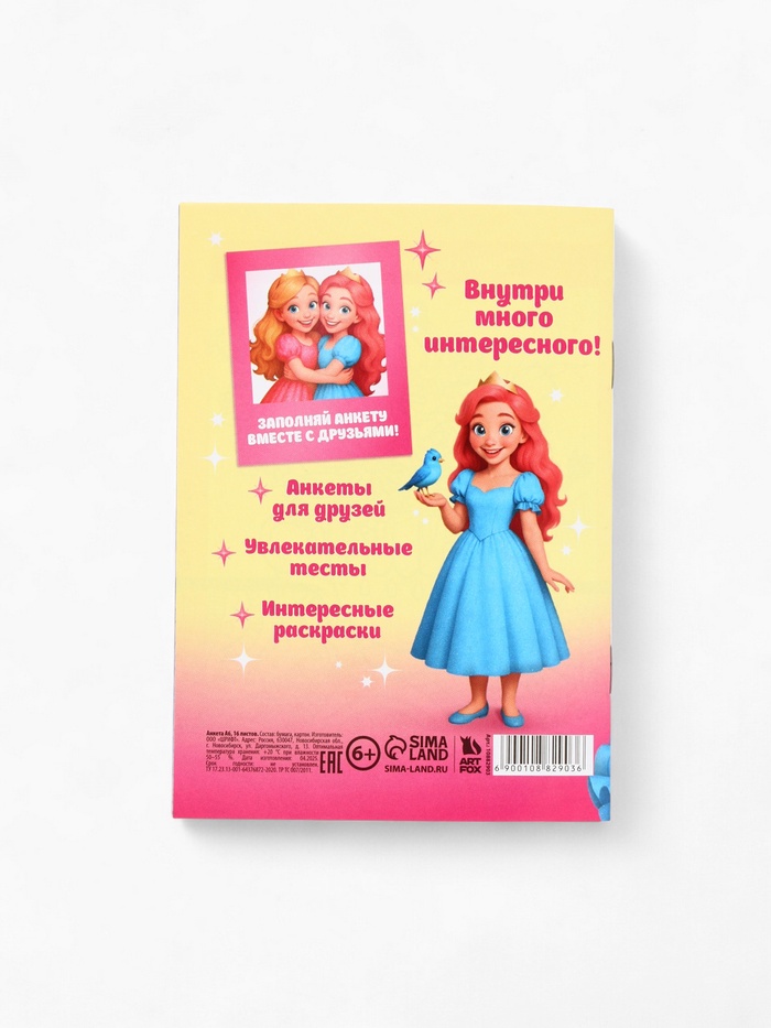 Анкета для девочек, А6, 16 листов «Анкета настоящей принцессы» — Характеристики