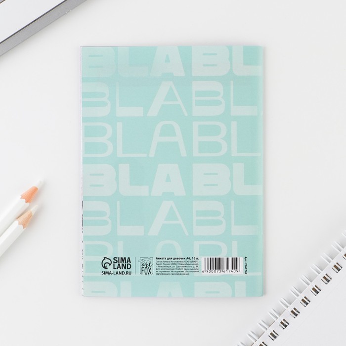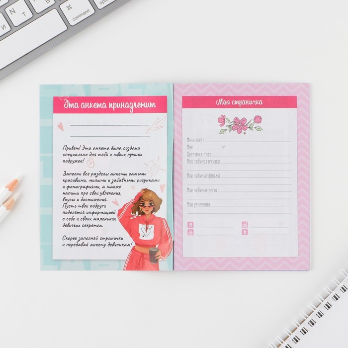 Анкета для девочек «Подружки», А6, 16 листов — Характеристики