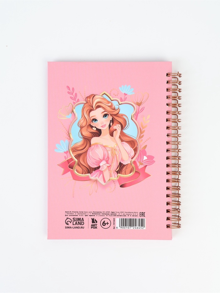 Анкета для девочки А5, 50 листов, твердая обложка «Принцесса» — Характеристики