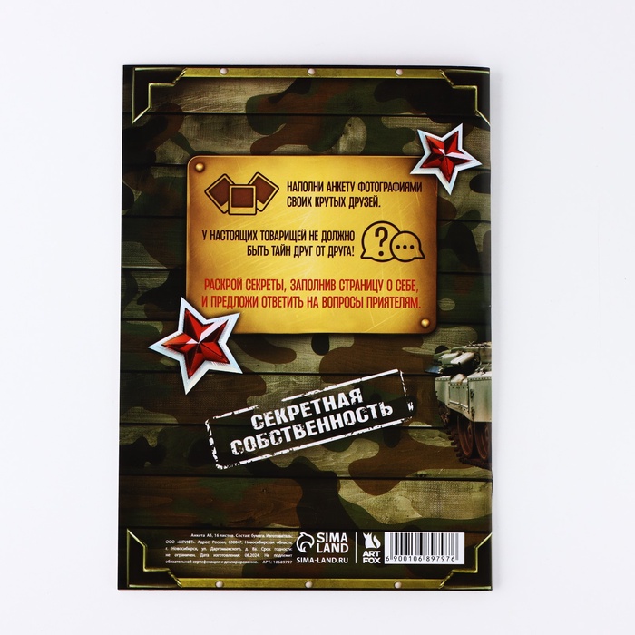 Анкета для друзей А5, 16 л. «23 февраля» — Характеристики