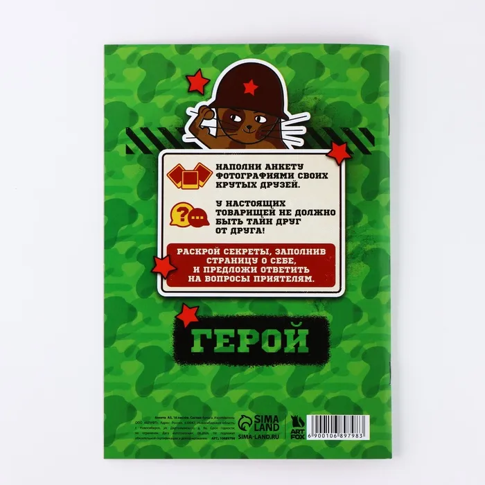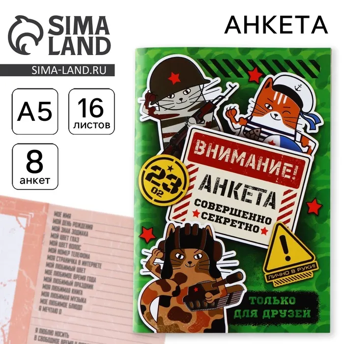 Анкета для друзей А5, 16 л. «Коты военные. 23 февраля» — Характеристики