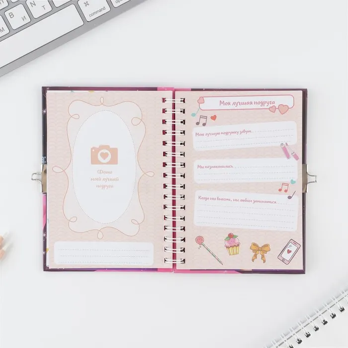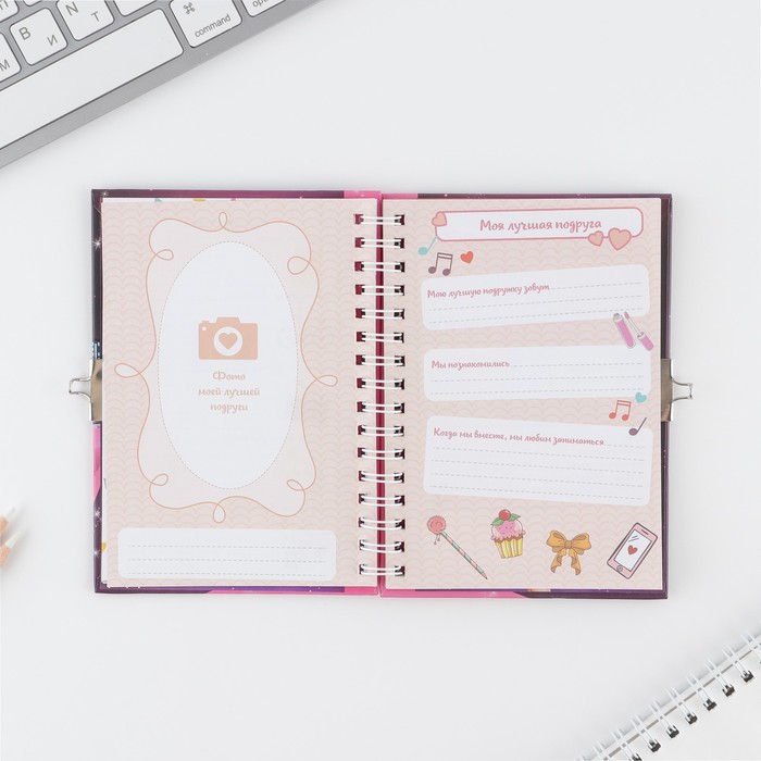 Анкета на замочке, в твердой обложке А6, 40 листов «Анкета классной девчонки и ее подруг» — Характеристики