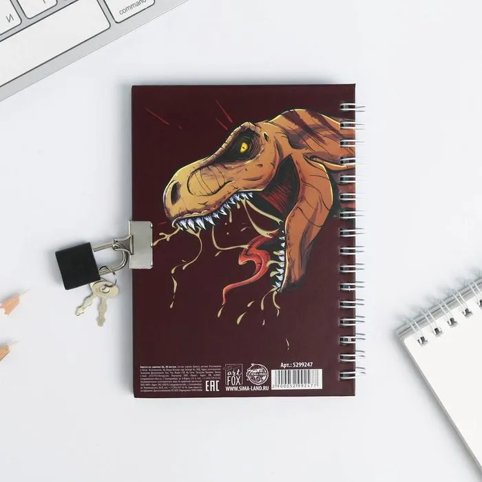 Анкета на замочке, в твердой обложке А6, 40 листов «Динозавр» — Характеристики