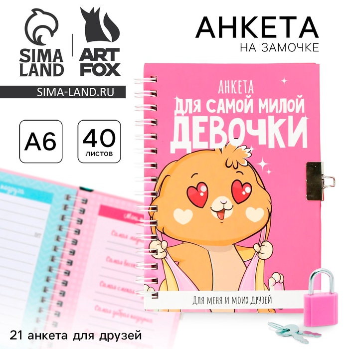 Анкета на замочке, в твердой обложке А6, 40 листов «Для самой милой девочки» — Характеристики