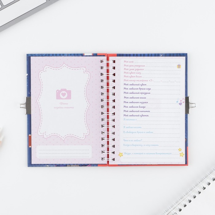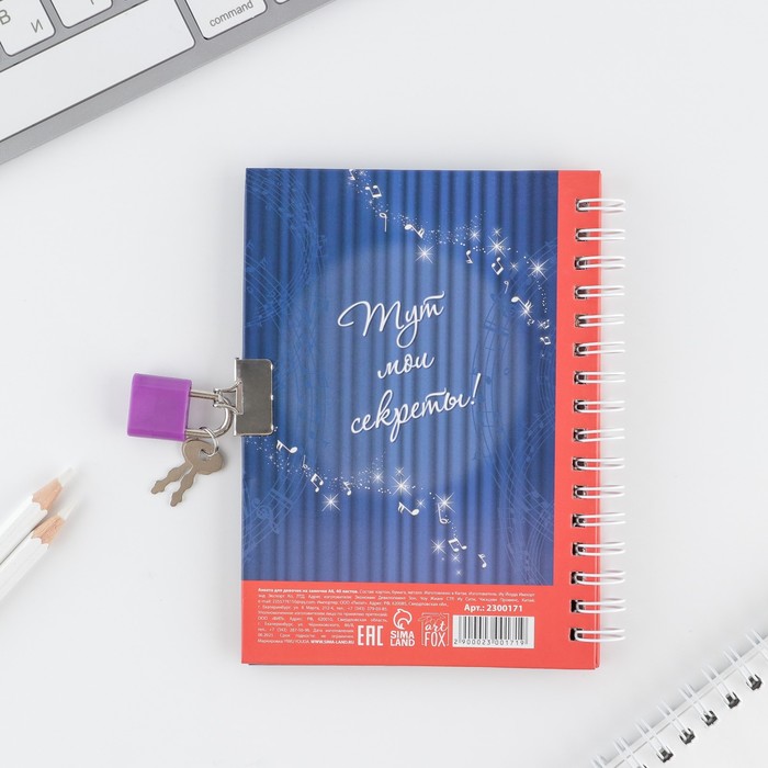 Анкета на замочке, в твердой обложке А6, 40 листов «Ярче звезд» — Характеристики