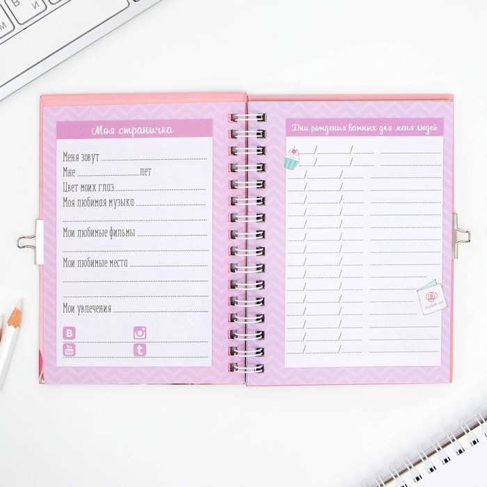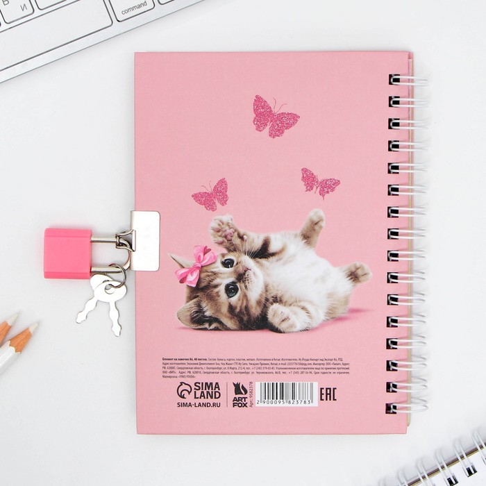 Анкета на замочке, в твердой обложке А6, 40 листов «Котик» — Характеристики