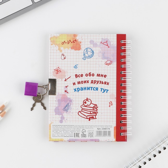 Анкета на замочке, в твердой обложке А6, 40 листов «Мои школьные друзья» — Характеристики