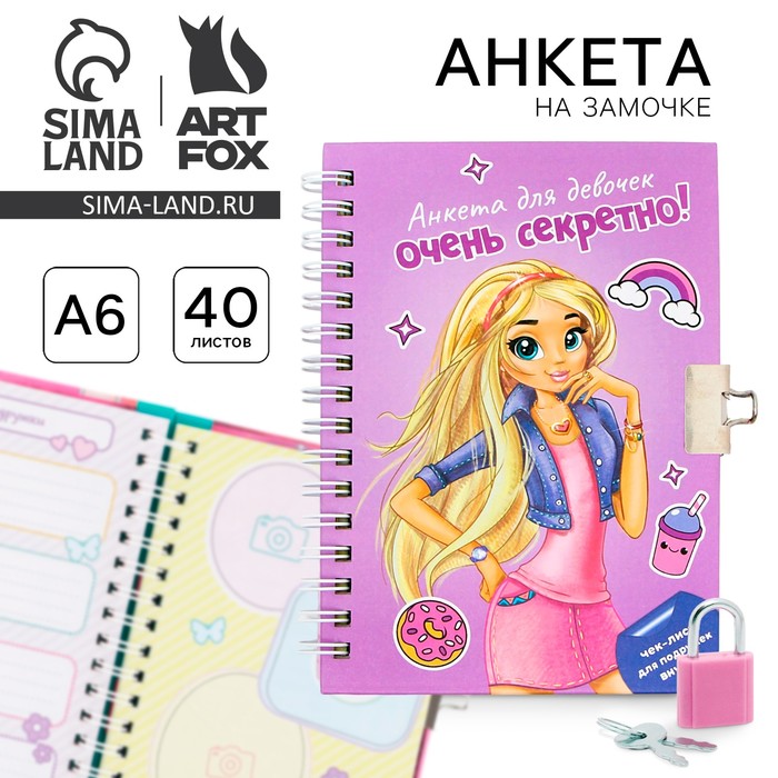 Анкета на замочке, в твердой обложке А6, 40 листов «Очень секретно!» — Характеристики