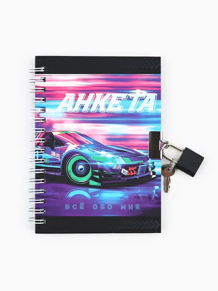 Анкета на замочке, в твердой обложке А6, 40 листов «Тачка» — Характеристики