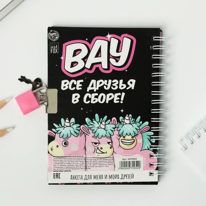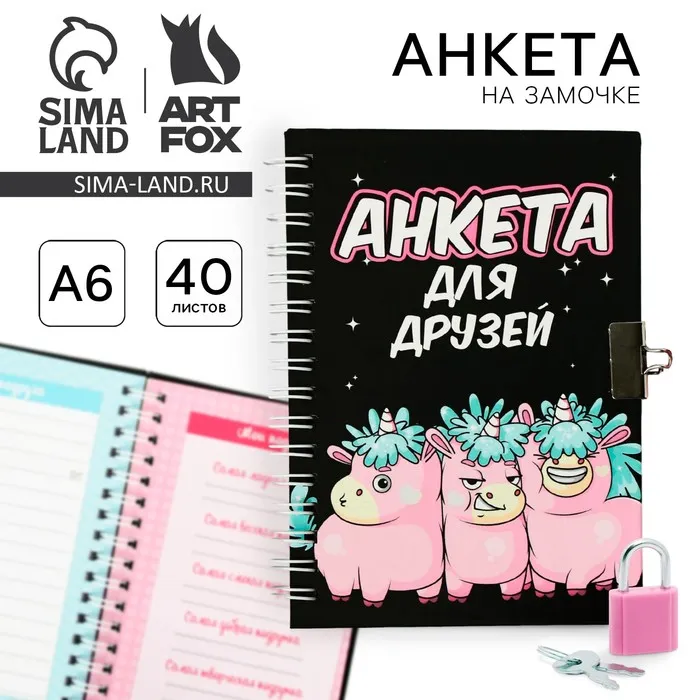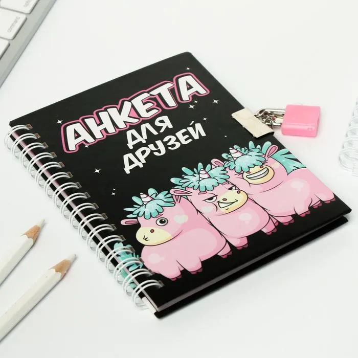 Анкета на замочке, в твердой обложке А6, 40 листов «Все друзья в сборе» — Характеристики
