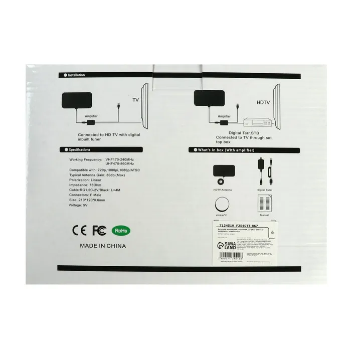 - Установка: клеящаяся основа позволяет легко крепить антенну на стенах или других поверхностях.