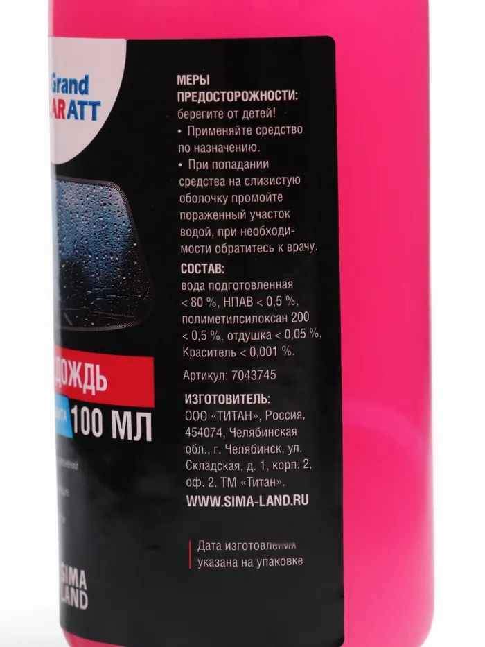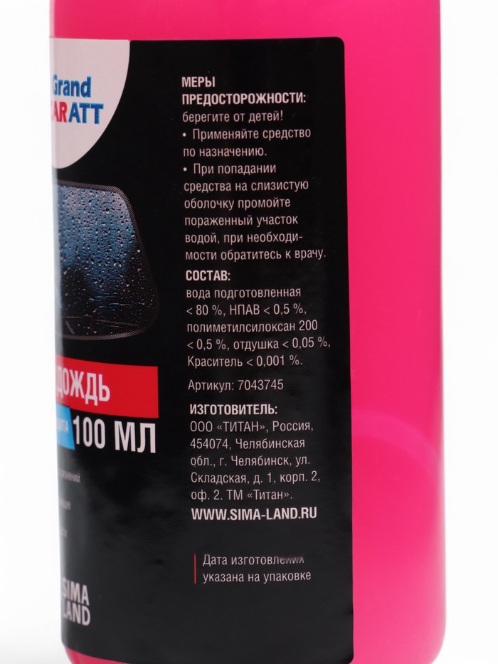 Антидождь Grand Caratt, гидрофобное покрытие, спрей, 100 мл — Характеристики
