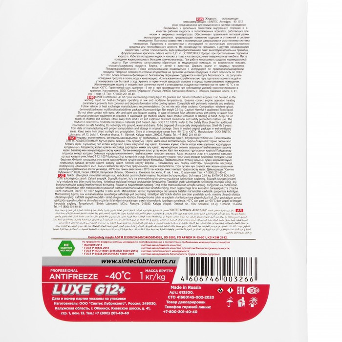Антифриз LUX предназначен для всех современных двигателей, подвергающихся высокой нагрузке, особенно алюминиевых. Антифриз LUX обеспечивает прекрасную защиту системы охлаждения от замерзания, коррозии и перегревания, эффективно защищает от образования отложений в охлаждающих каналах, в отсеке двигателя, в радиаторе и водяном насосе.