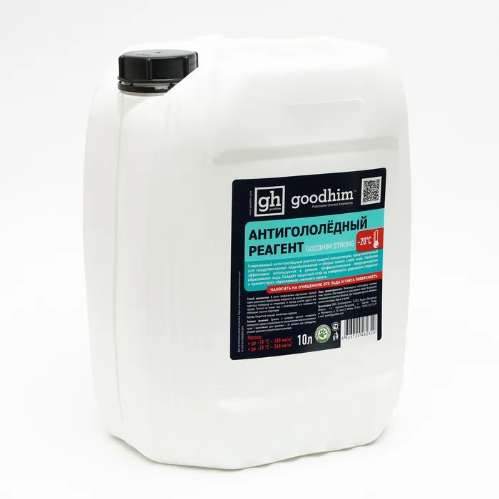 Внимание! Реагент используется в основном на небольших участках по площади, например, пороги, ступеньки, тропинки, подступы к магазинам, кассам АЗС, перед входом в помещение, там, где идет постоянный перепад температур! Для большой территории лучше использовать сухой противогололедный реагент, соль или песок. АНТИГОЛОЛЕДНЫМ РЕАГЕНТОМ GOODHIM STRONG -20°С можно лить непосредственно из канистры на очищенную поверхность. Он не плавит лед, а предотвращает его появление на небольших участках территории.