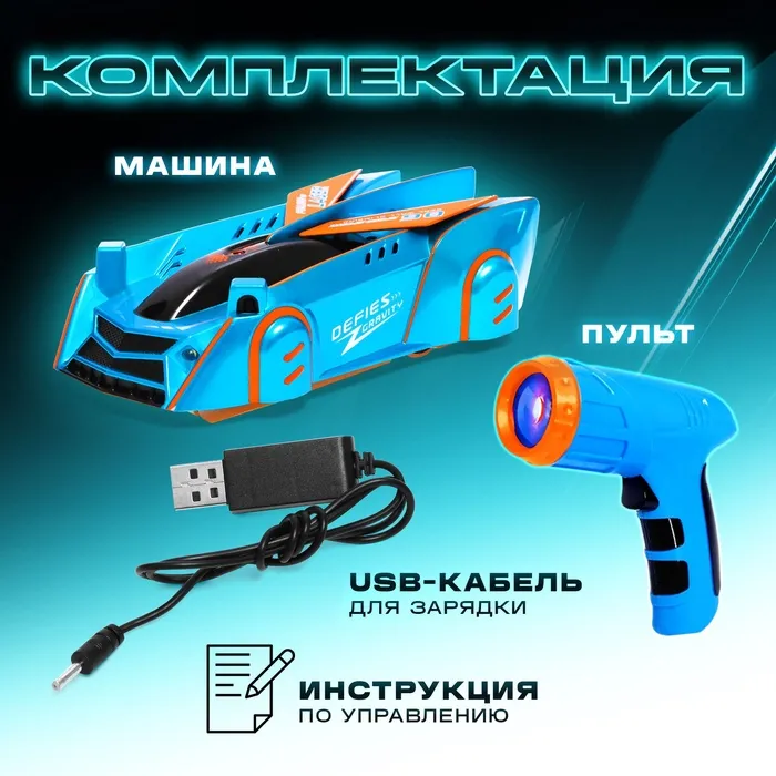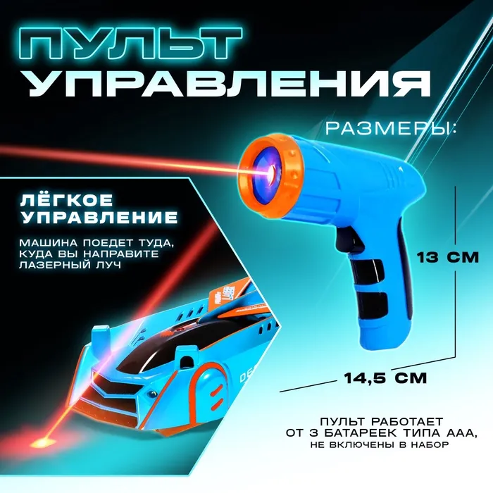 Антигравитационная машинка LASER, управление лазером, работает от аккумулятора, ездит по стенам, цвет синий — Характеристики