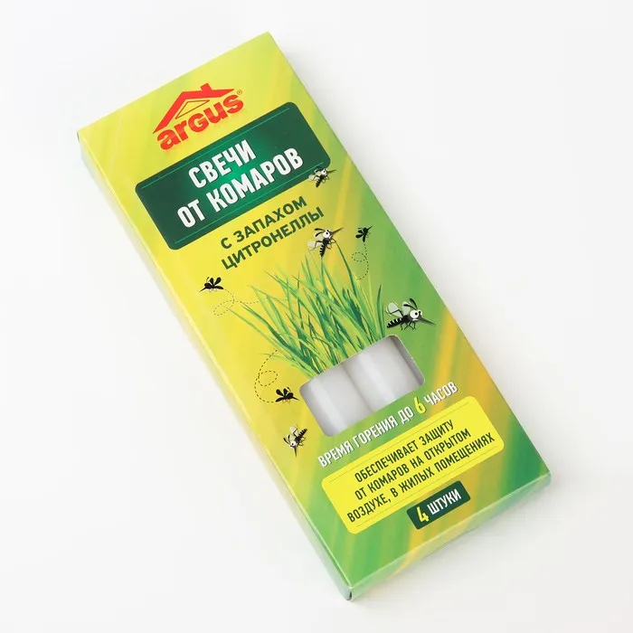 Антимоскитные свечи ARGUS, с маслом цитронеллы, 4 свечи — Характеристики