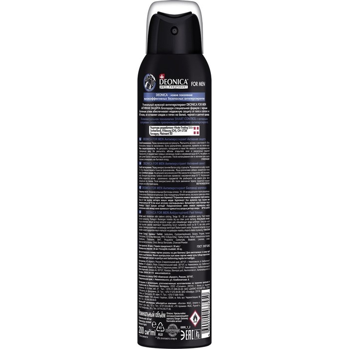 Антиперспирант Deonica for Men «Активная защита», аэрозоль, 200 мл — Характеристики