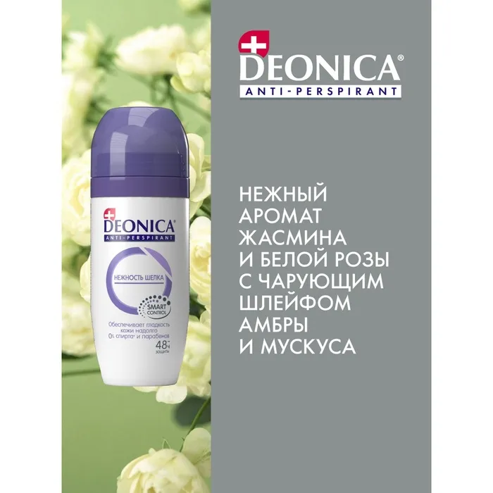 Уникальный Антиперспирант Deonica "Нежность шелка" - гарантированно подарит вам защиту и ощущение свежести в течение дня. Благодаря входящему в состав натуральному экстракту замедляет рост нежелательных волос и обеспечивает надёжную защиту и свежесть на 48 часов. После применения антиперспиранта на протяжении месяца новые волоски начинают расти медленнее, становятся тоньше, а при условии регулярной эпиляции приобретают округлые края.