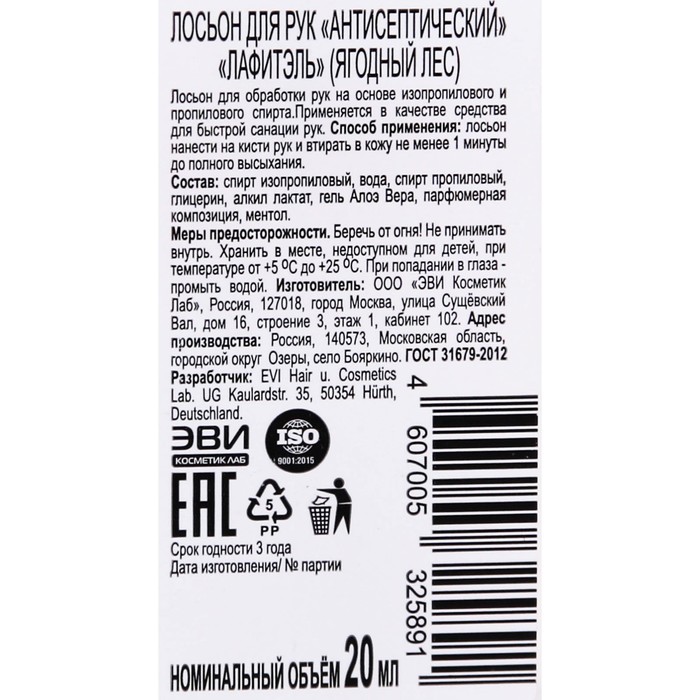 Лосьон применяется в качестве средства для быстрой санации рук. Незаменим везде, где недоступны вода и мыло: на природе, в поездках на автомобиле и городском транспорте, в общественных местах. Быстрая и эффективная дезинфекция рук без воды и мыла!