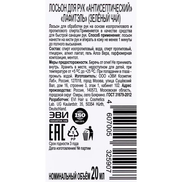 Состав: Спирт изопропиловый, вода, спирт пропиловый, глицерин, алкил лактат, гель Алоэ Вера, парфюмерная композиция, ментол.