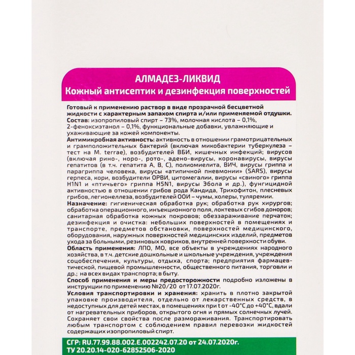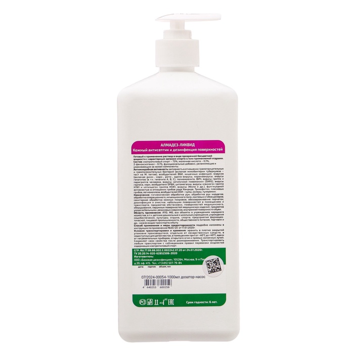 Антисептик кожный «Алмадез-ликвид», с насос-дозатором,1 л — Характеристики
