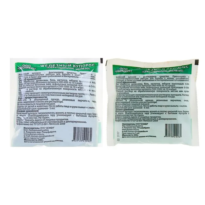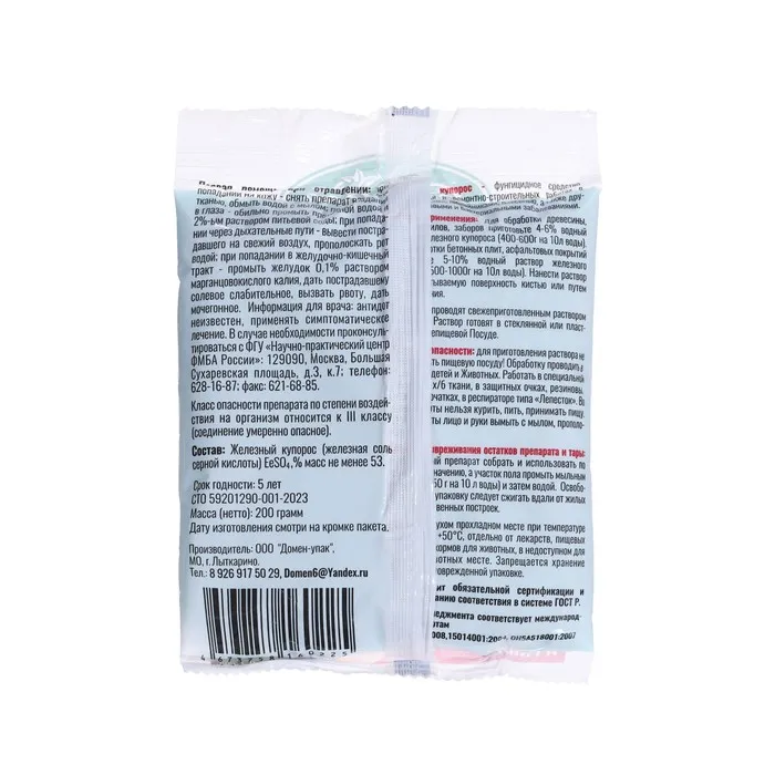 Антисептик Железный Купорос «Домен» от плесени, гнили, пакет 200 г — Характеристики