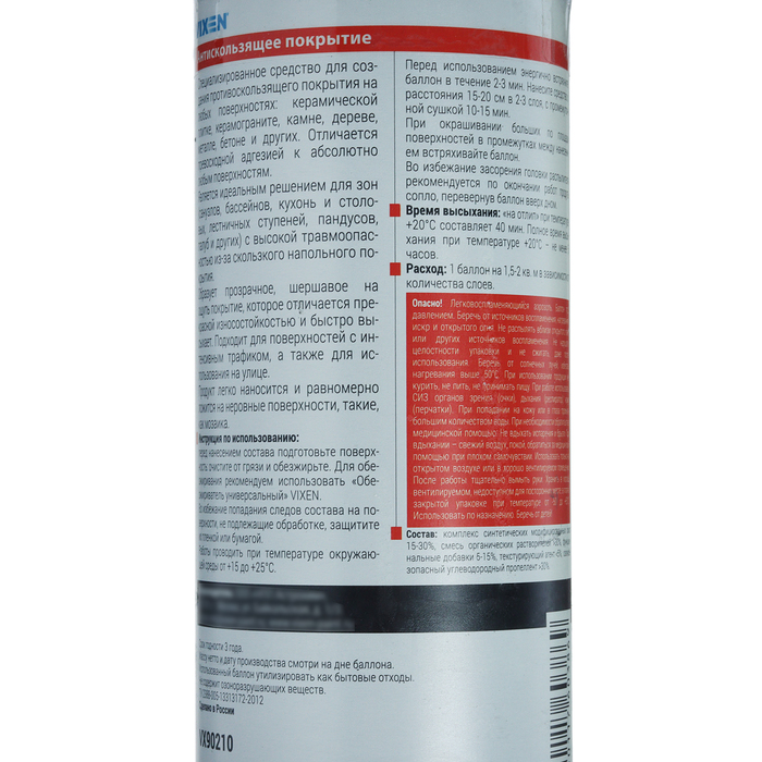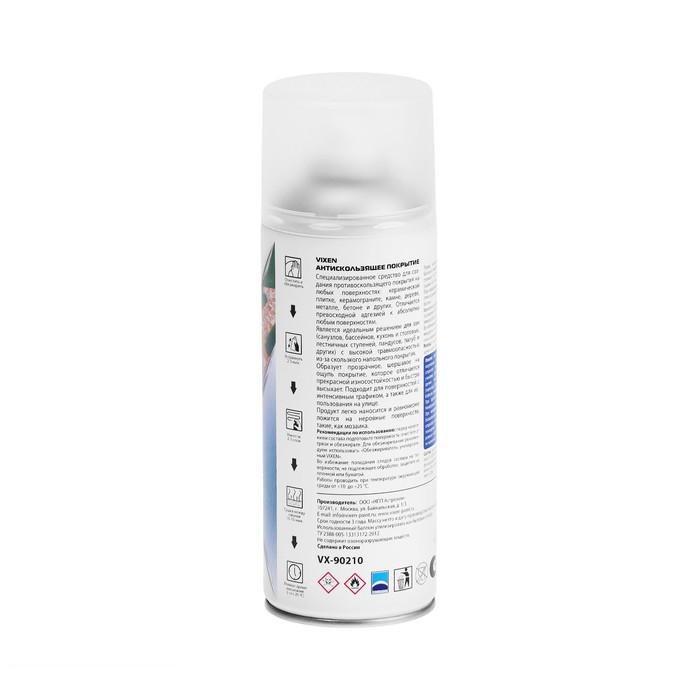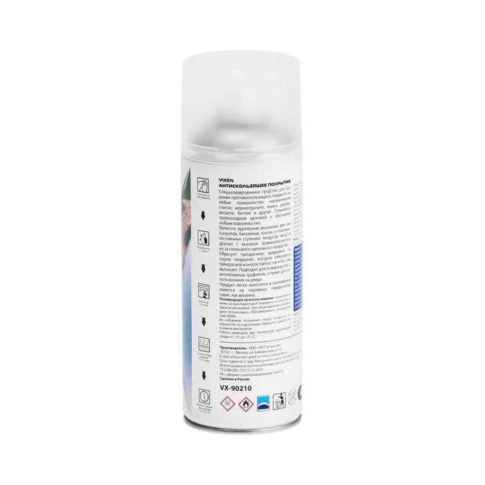 Антискользящее покрытие VIXEN – это специализированное средство для создания противоскользящего покрытия на любых поверхностях: керамической плитке, керамограните, камне, дереве, металле, бетоне и других. Отличается превосходной адгезией к абсолютно любым поверхностям. Является идеальным решением для зон (санузлов, бассейнов, кухонь и столовых, лестничных ступеней, пандусов, палуб и других) с высокой травмоопасностью из-за скользкого напольного покрытия. Образует прозрачное, шершавое на ощупь покрытие, которое отличается прекрасной износостойкостью и быстро высыхает. Подходит для поверхностей с интенсивным трафиком, а также для использования на улице. Продукт легко наносится и равномерно ложится на неровные поверхности, такие, как мозаика.