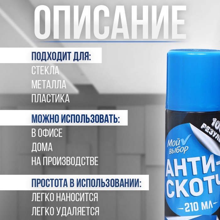 Антискотч «Мой выбор» - это надежный помощник в борьбе с неприятными следами клея, обеспечивая качественное и безопасное удаление наклеек и остатков скотча.