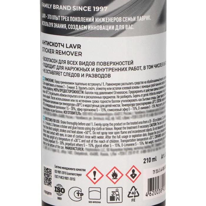 Антискотч LAVR, 210 мл, аэрозоль, средство для удаления наклеек, Ln1746 — Характеристики
