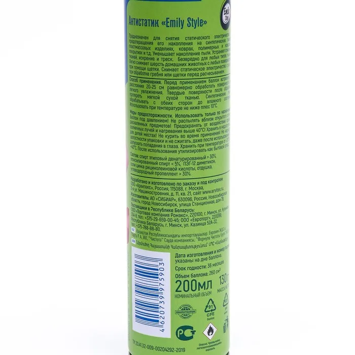 Антистатик Emily Style устраняет прилипание одежды к телу, искрение и треск. Кондиционирующие добавки смягчают ткань и делают одежду приятной на ощупь. Дезодорирующий комплекс предотвращает появление неприятных запахов и сохраняет длительную свежесть вашей одежды.