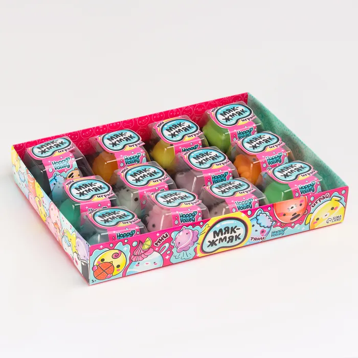 - Внутри коробочки находится игрушка-мялка, а какая именно — ребёнок узнает, когда откроет её.