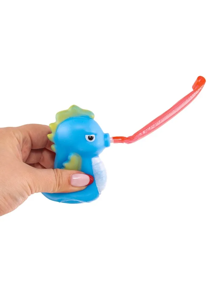 • При сжатии игрушка выпячивает длинный язычок, вызывая улыбку и удивление.