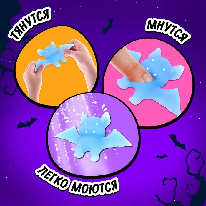 Антистресс игрушка - сюрприз «Мяк-жмяк», мялка летучая мышка с наклейками, МИКС — Характеристики