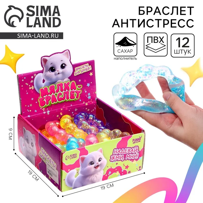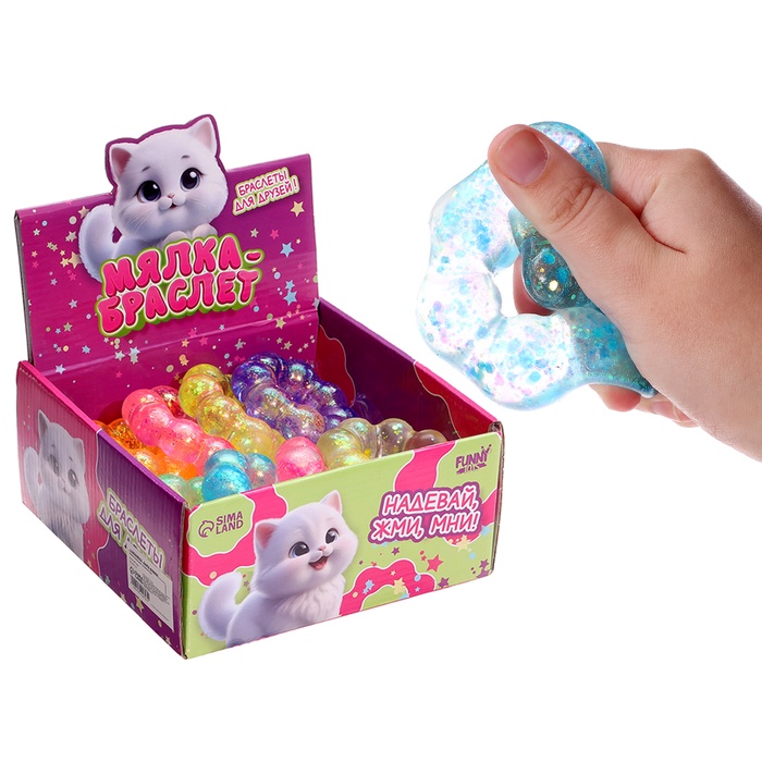 Антистресс-игрушка «Браслет» — это отличный способ расслабиться и поднять настроение. Игрушка наполнена сахаром и блёстками, что делает её идеальной для снятия напряжения.
