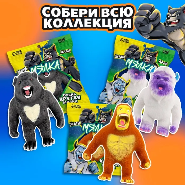 Антистресс сквиш мялка «Ярость орангутана», в пакете, с песком, тянучка — Характеристики