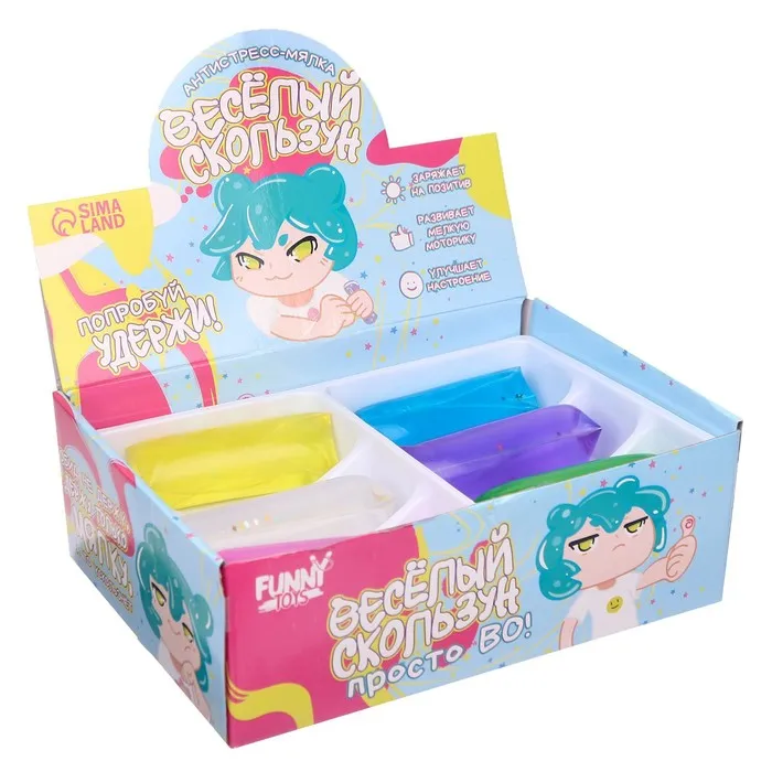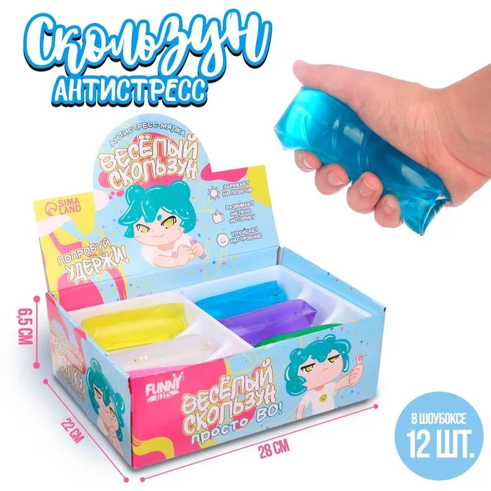 Антистресс сквиш мялка скользун «Попробуй удержи», МИКС, с жидкостью, в шоубоксе — Характеристики