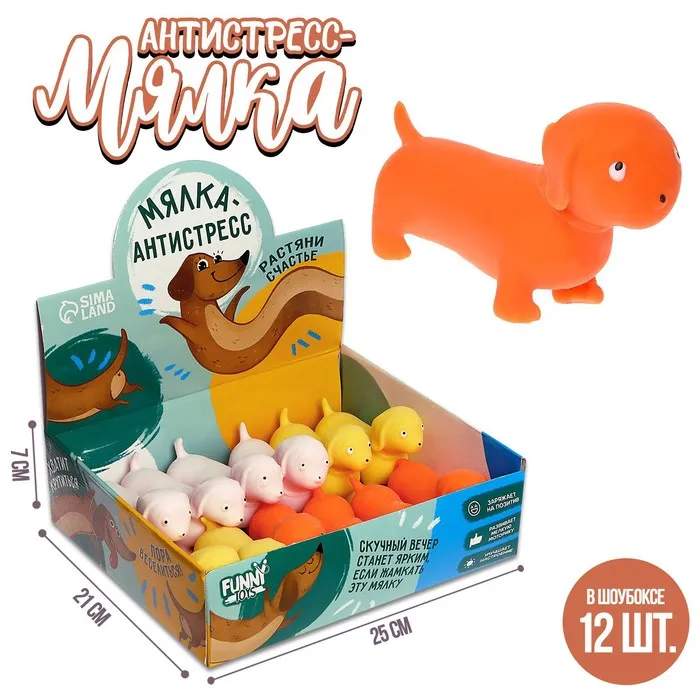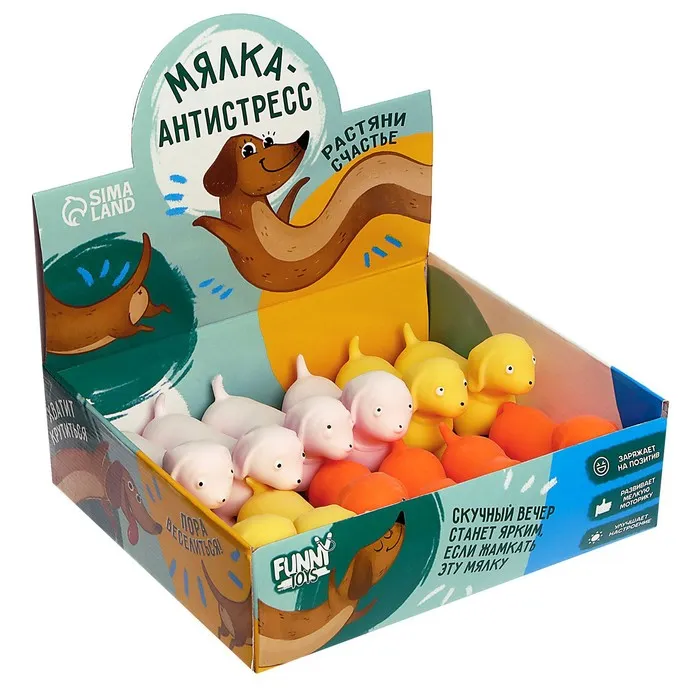 Антистресс сквиш мялка «Такса», с песком, тянучка, в шоубоксе, МИКС — Характеристики