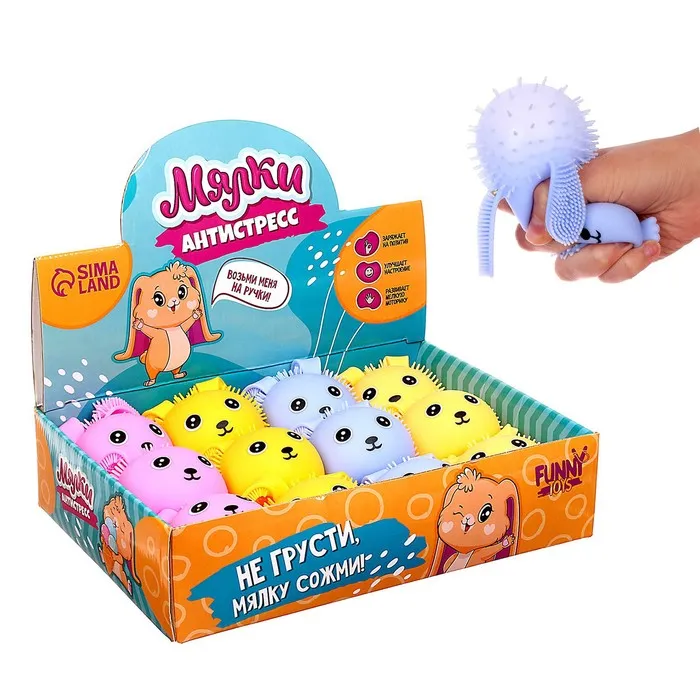 Антистресс сквиш мялка «Зайчик», с воздухом, цвета МИКС, в шоубоксе — Характеристики