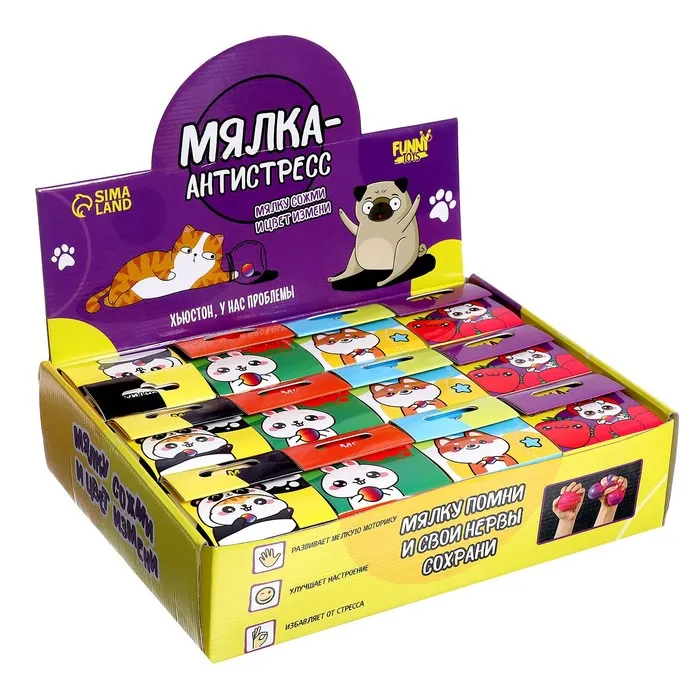 Мялка — это компактный и удобный способ справиться с напряжением и усталостью. Сжимайте и мните игрушку — она не потеряет своей первоначальной формы. Благодаря своей структуре и материалу, мялка поможет снять стресс и улучшить настроение.