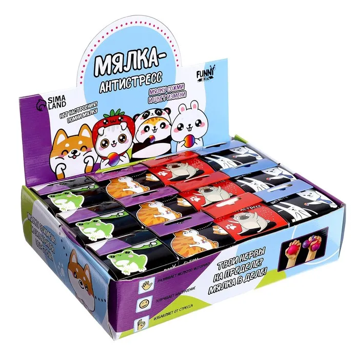 Антистресс сквиш мялка «Зверята», с пастой, в шоубоксе, МИКС — Характеристики