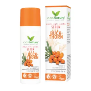 Уникальная формула сыворотки Сosnature с облепиховым маслом создана специально для борьбы с нежелательным старением кожи. Основное действие средства направлено на нормализацию микроциркуляции крови в клетках, повышение тонуса тканей, питание и увлажнение.Оказывает мощное антиоксидантное и омолаживающее действие, помогает справиться с куперозом, увеличивает скорость заживления.
